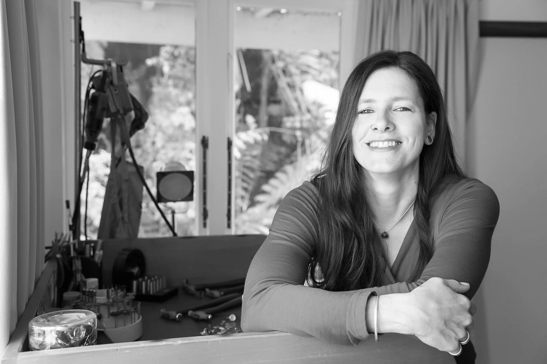 Creating jewellery provides me with a deep sense of fulfilment. I prefer working on one-off pieces, giving myself a challenge with each new body of work. What I love about jewellery making is the wealth of techniques and materials, ensuring a lifetime of learning and improving. I enjoy adding an element of playfulness to my works, often with moving parts. With a background in science, I particularly relish the technicality of little engineered pieces. I feel very lucky to be able to work from my home studio, overlooking the beautiful Wellington harbour and a nature reserve - surrounded by birdsong and my own various pets.